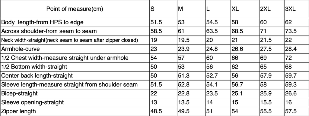 Sizing chart in pictures.